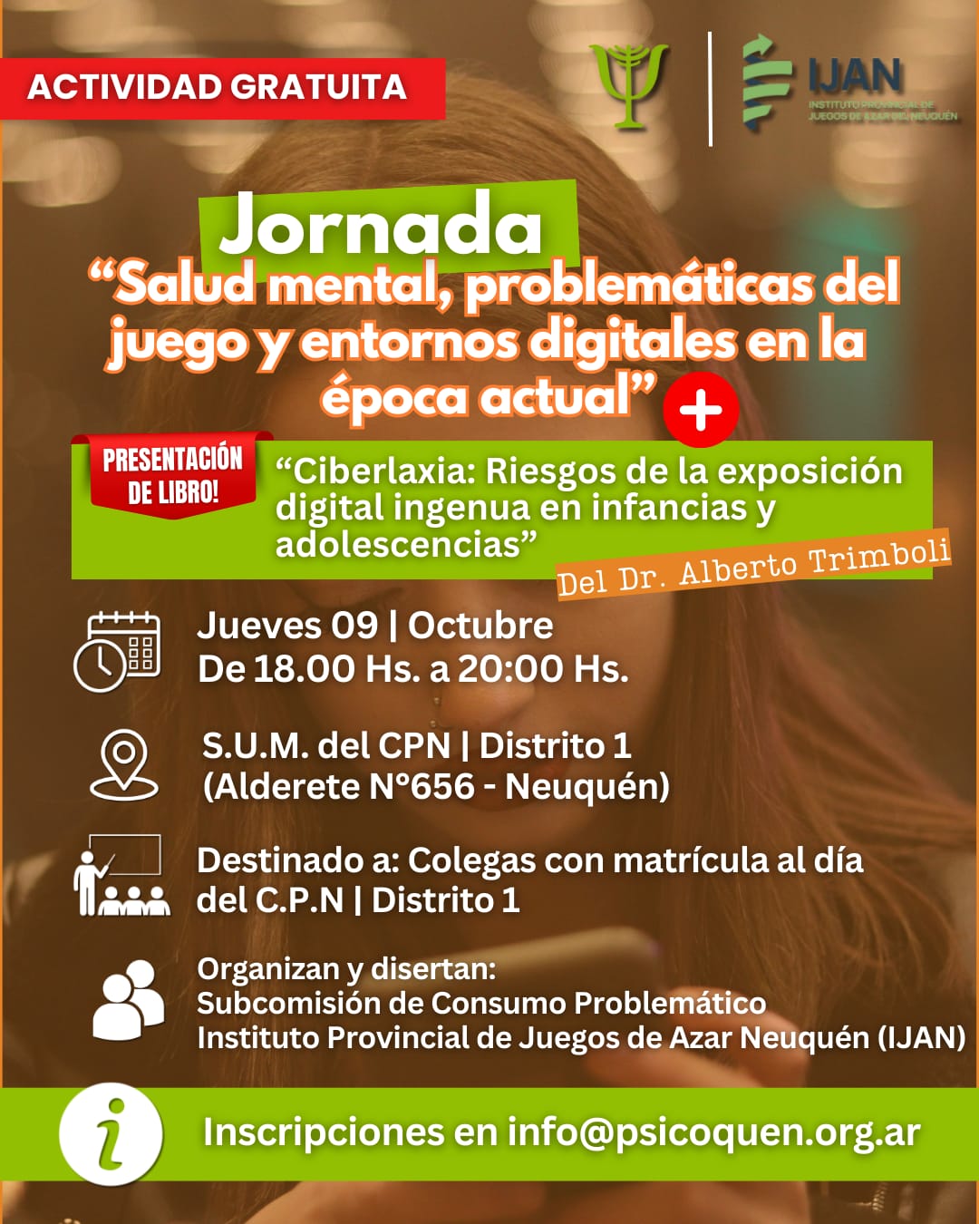 Jornada: Salud Mental, problemáticas del juego y entornos digitales en la epoca actual & Presentación del libro